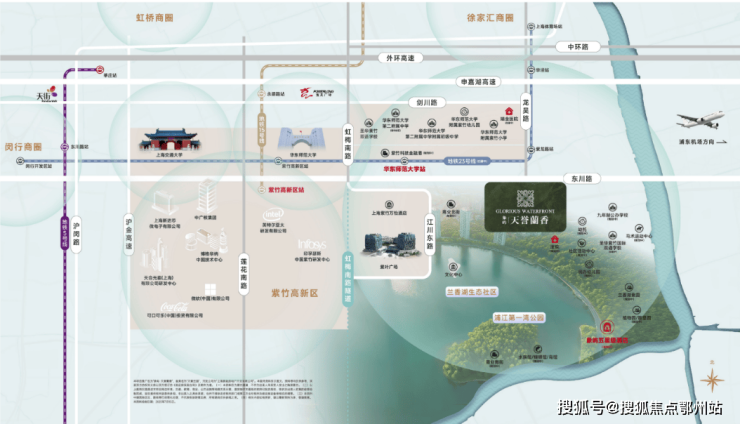 紫竹,不仅肩负上海发展科创中心的“天时”,更拥有黄浦江第一湾的“地利”,同时也享有闵行区第一大人工湖—— 约40万㎡兰香湖 的“人和”。