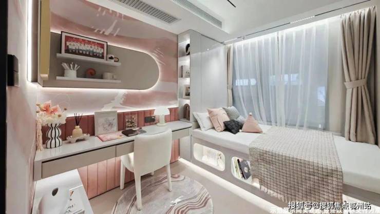 值得一提的是,市面上大部分100㎡横厅户型多少会牺牲北向房间的尺度。而项目北向房间面宽约2.8米,搭配飘窗的设计,完全可以满足卧室的功能使用。
