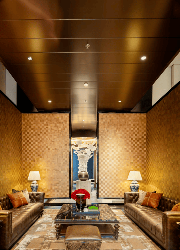 建面约190㎡ C户型,两梯两户,私享梯厅,家的玄关尺度,延伸至电梯厅,增加实际使用面积。入户处 大师定制瓷板门牌画,私属感满满,打造专属归家仪制。