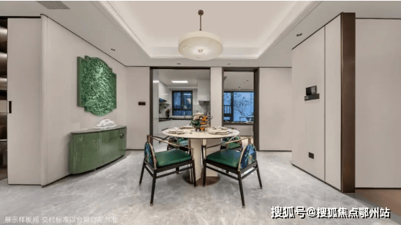 宽阔餐厅空间,可放置圆形餐桌,同时,预留餐边柜空间,满足更多收纳储物的需求,让质感与实用性兼具。