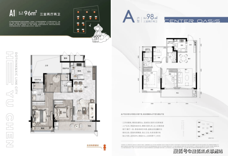 在户型方面,荷禹宸府几乎全面败退。荷禹宸府的96㎡中间套户型和咏翠芳华轩的98㎡中间套户型在格局上基本类似,