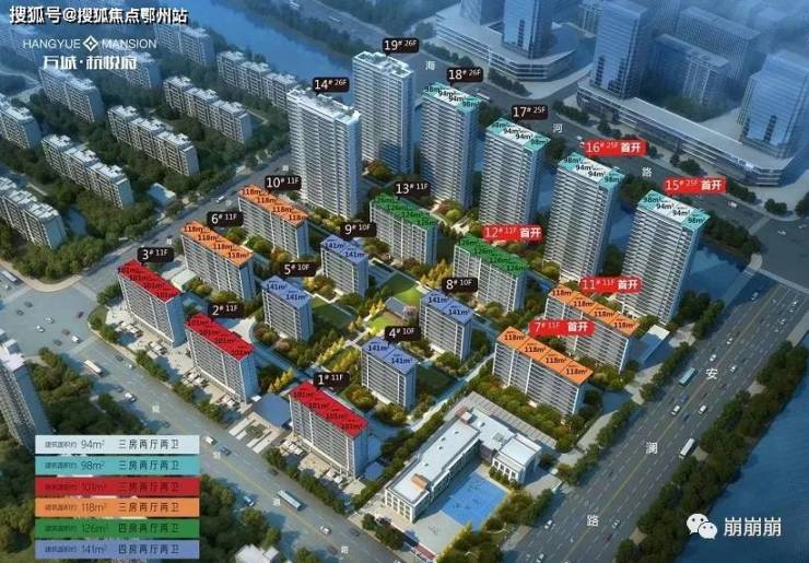 面积: 高层94-98方(25-26F),小高层101-141方(10-11F)