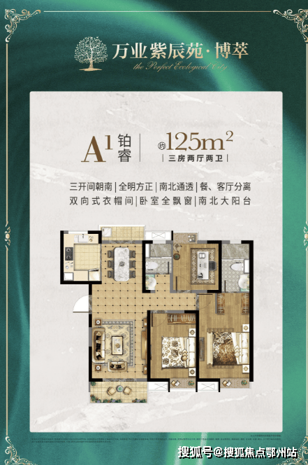 A1户型 125㎡三房两厅两卫 东边套