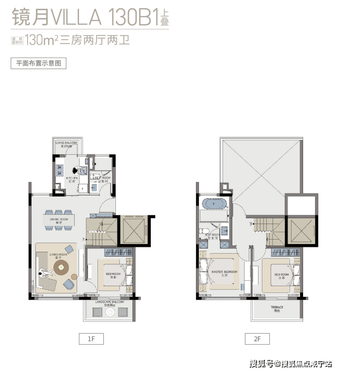 建面约130㎡上叠户型三房两厅两卫