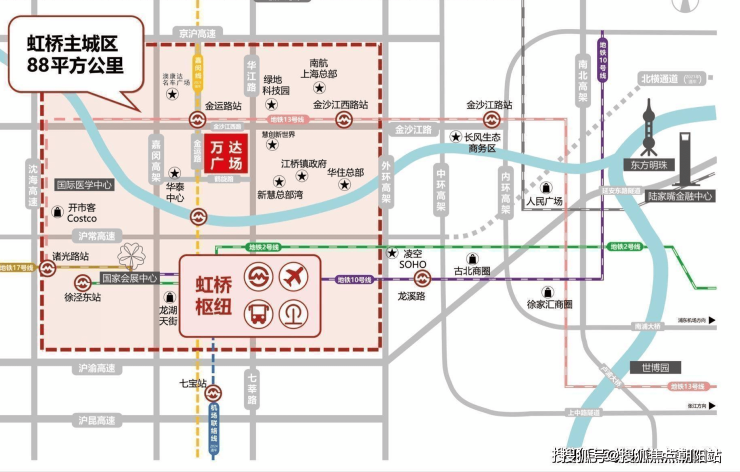 3️⃣:交通优势:双地铁上盖,地铁13号线金运路站0距离,6站环球港,30分钟南京西路,40分钟浦东世博。建设中嘉闵线2站虹桥枢纽,未来对接苏锡常城际铁路。