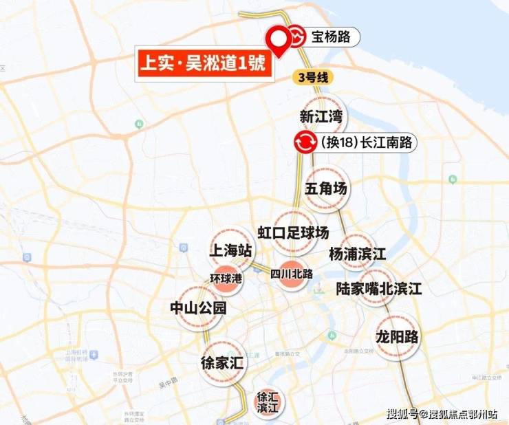 项目直线距离3号线宝杨路站约500米,可轻松步行进站,通达虹口足球场、中山公园、徐家汇等多个热门商圈;还能换乘多条线路,比如18号线,途径财大、复旦、杨浦滨江、陆家嘴滨江。