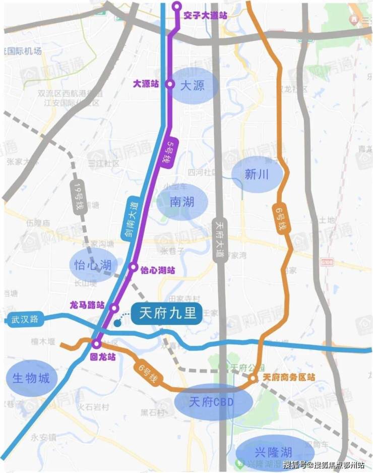 这也因此,让天府九里成为了城南诸多产业高地的 【30分钟通勤圈】汇合点:1站可达怡心湖;3站到达天府CBD;7站直达大源CBD;10站抵达金融城。成都轨道五期规划中的5号线三期,2站还可达天府国际生物城。