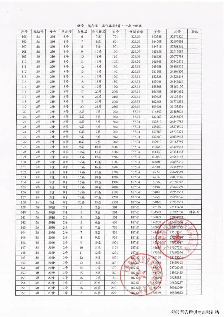 附6套房源一房一价表