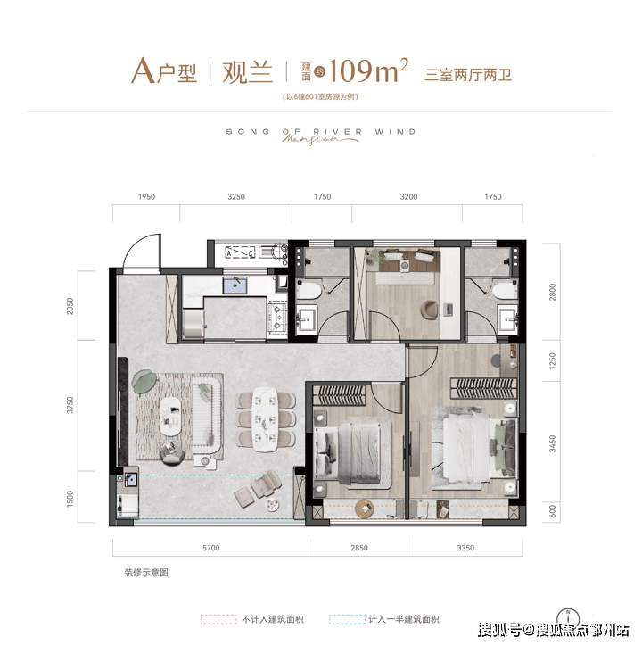 建面约109m²体验房实拍图