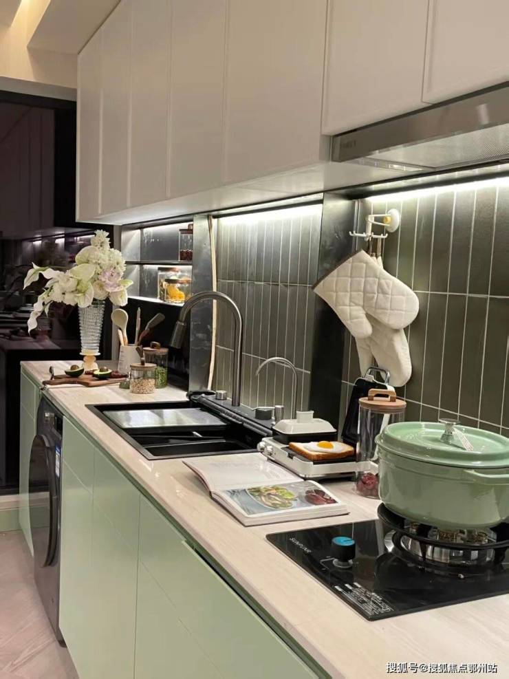 同步公开的建面48㎡纯新样板间,以年轻人喜欢的亮色系为主,大面积落地窗+开放式厨房+极致收纳空间,民水民电,还通燃气,使得日常居住实用性非常强。