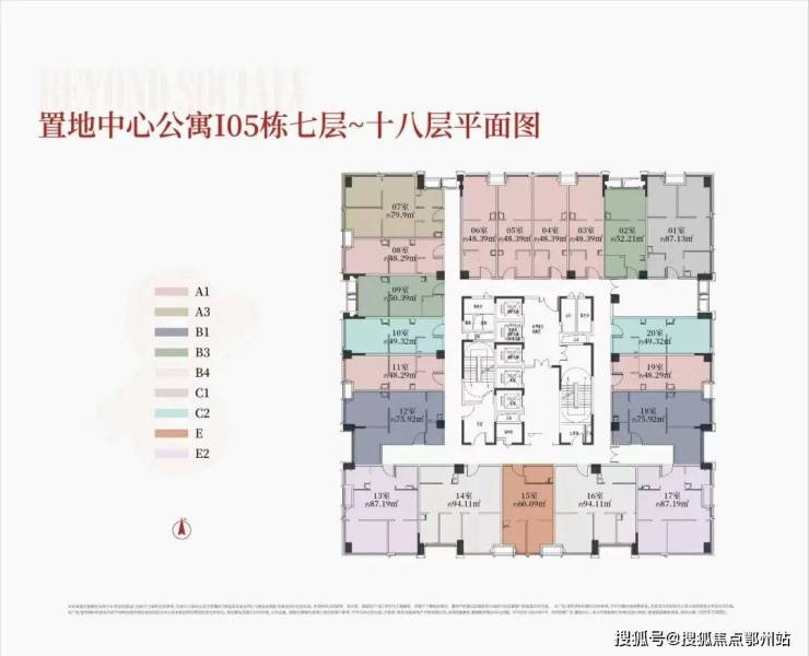 就IO5号楼的平面图来看,总高29层,建筑面积约48、60、75、88、95㎡,总价60万起,民水民电通燃气,一层5梯20户,层高3.2米,具体户型分布图如下: