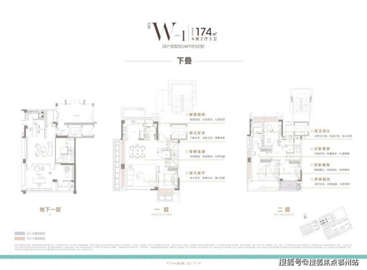 目前市面上常规叠墅,常因单层面积局促导致居住体验受限,往往刚迈开步便需上下楼梯。相比之下,时代之城下叠产品单层空间舒展的布局真正诠释了改善型住宅的精髓!