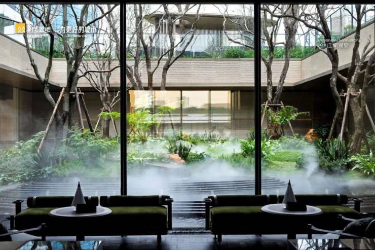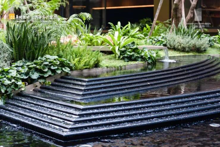 豪宅标配的【下沉庭院】,辗转多地选用形态优美的乌桕,约313㎡野趣乌桕林与流线优美的水景相映成趣,立体景观层次,极大地调动了来宾的感官体验,让人不觉驻足观赏。