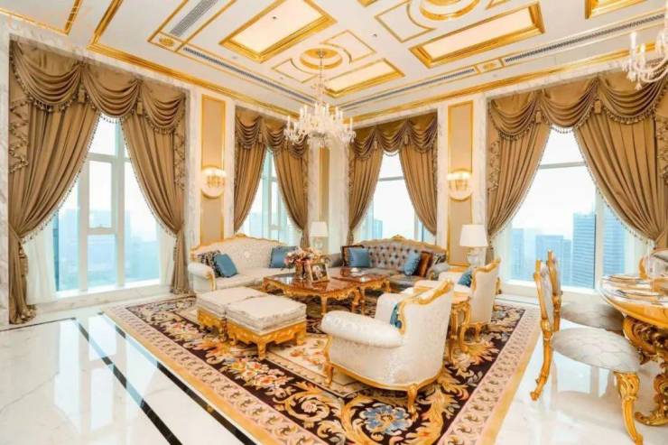 因为新古典主义源自法国宫廷,应用场景层高通常在5米左右,才能为水晶大吊灯、雕花柱头等提供足够的“炫耀空间”。