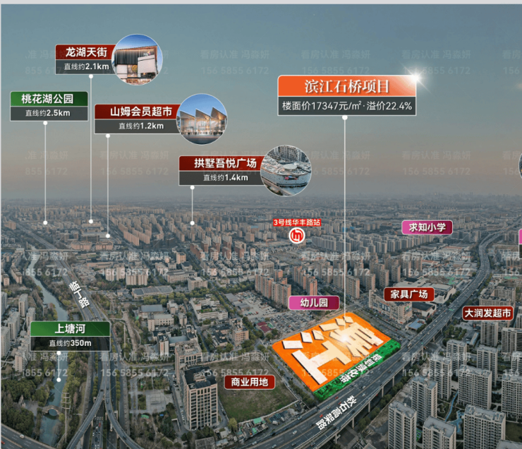 土地回顾: 2025年2月28日,杭州滨江房产集团股份有限公司(滨江房产)以106607万元竞得石桥单元GS130201-35地块,楼面价为17347元/㎡,溢价率为22.4%