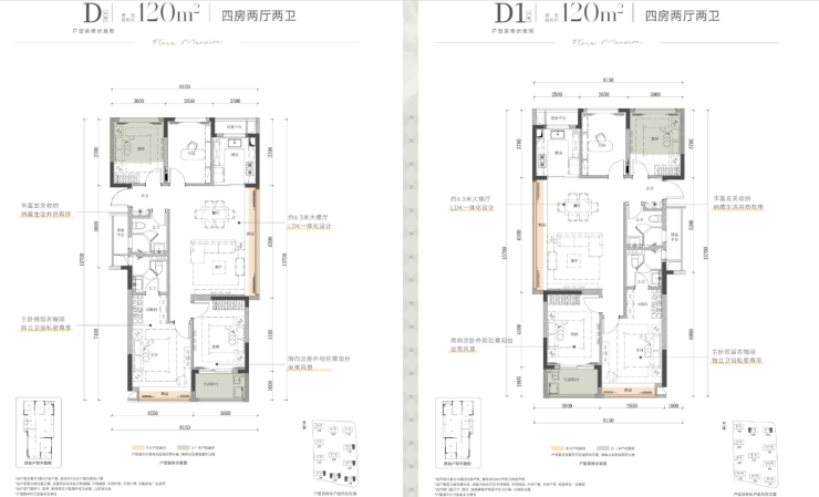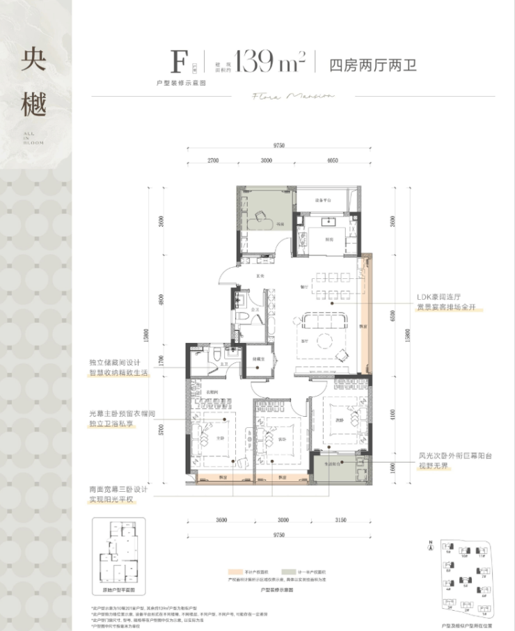 建面约139㎡的四房两厅两卫一储户型,则以它的南向三卧室:双飘窗+封闭阳台设计脱颖而出。整体南北通透设计,加上主卧衣帽间的贴心设置,为家庭生活提供了更多的空间选择和功能性需求。且设计了独立储藏室空间,满足家庭收纳。