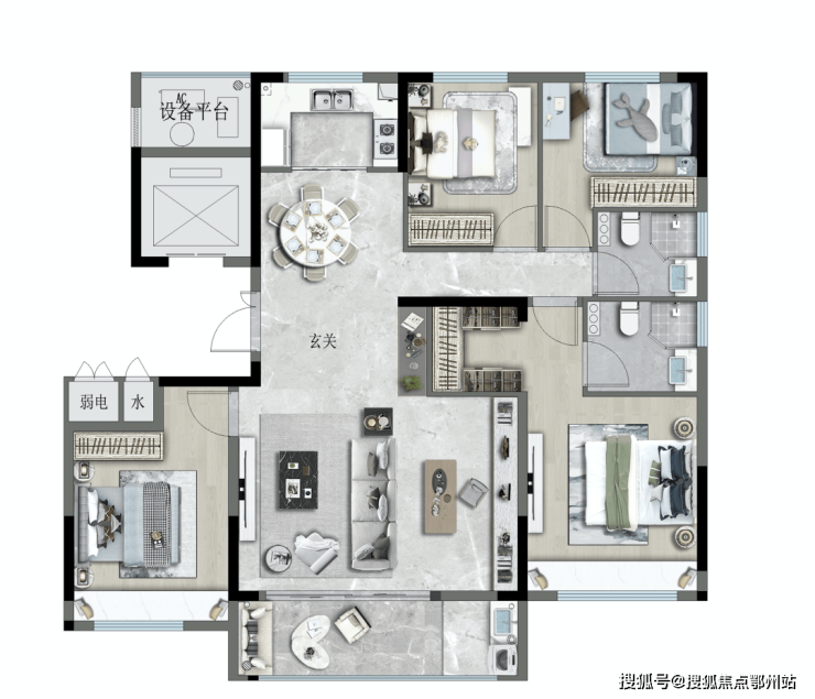 四叶草方正户型,主卧、南次卧与客厅三开间朝南,南向高效采光面,容纳更多阳光,打造更有温度的家,让清晨的第一缕阳光唤醒一天的理想的生活!