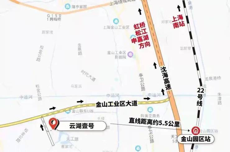 轨交方面,项目离轨交22号线金山园区站直线距离约5.5km,公交卡直接上车,可以去往上海南站,再坐三站地铁即到徐家汇。