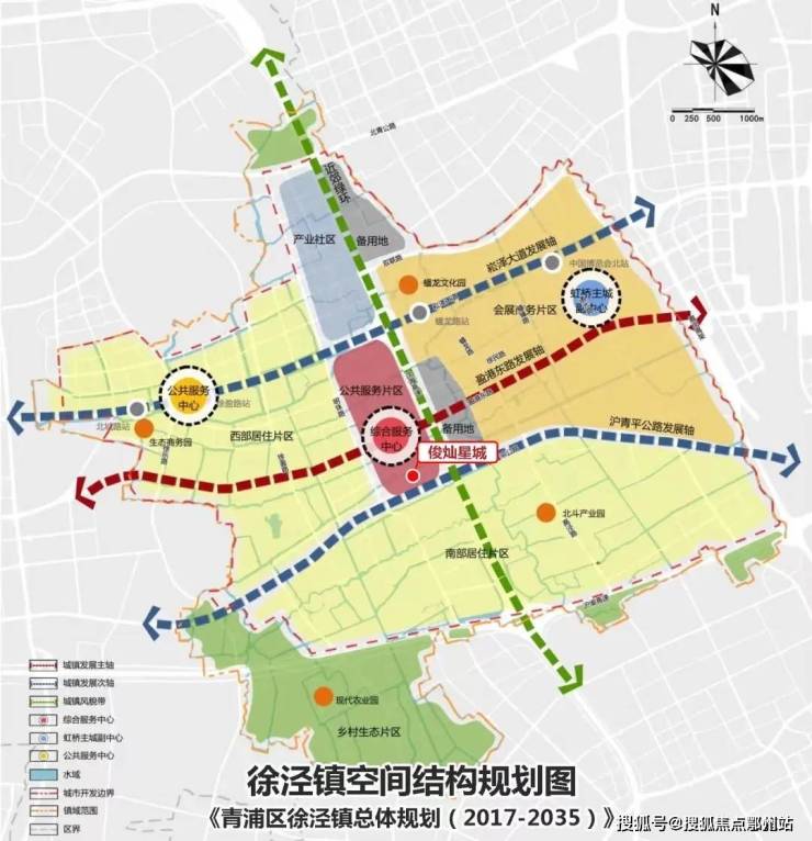 俊灿星城位于三个公共中心之一的 综合服务中心,将在老镇核心的基础上,集聚行政办公、文化、体育、教育、商业等多种服务功能,也是 徐泾的宜居高地