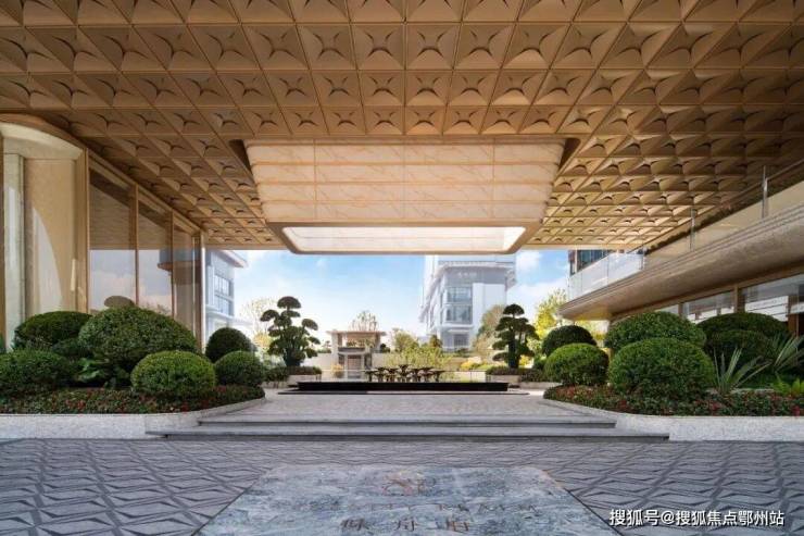 走近项目, 约85米超级画幅门厅的第一笔,飞扬在 高约9.5米的领域感门头之上,搭配 鎏金天幕铺陈,营造出精致、轩昂、高级的华宅氛围,归家的第一眼就有惊喜的体验。