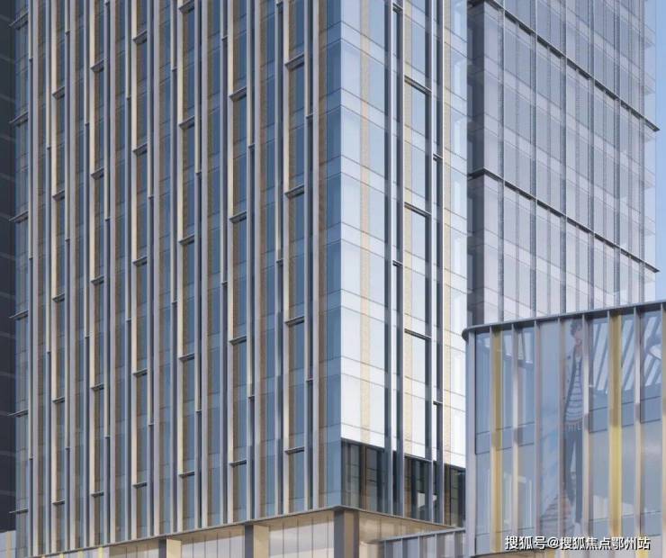 1#楼单元式幕墙臻选 三层夹胶中空超白玻璃,搭配穿孔铝板,隔音、节能、通透、安全性能卓越;
