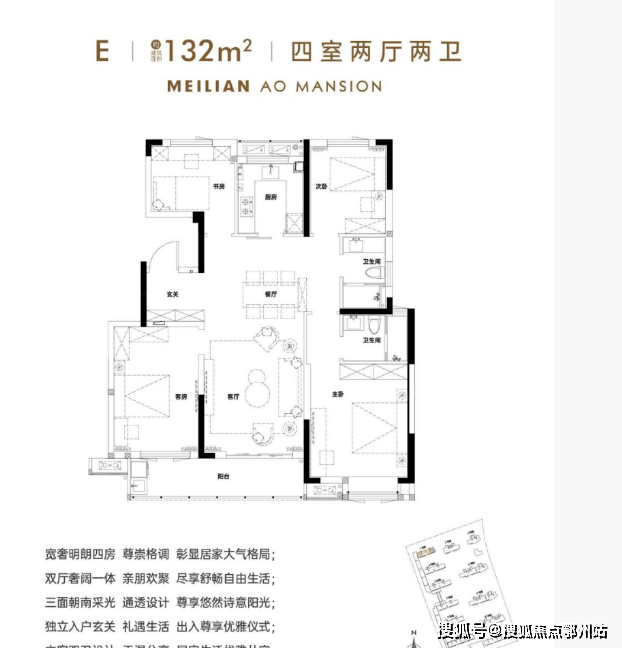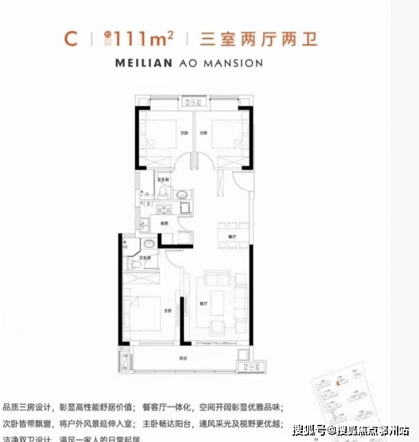 美联奥公馆占地面积约5.3万㎡,总建面约23万㎡,容积率约3,共1318户,车位配比约1:1.45,人车分流设计,包含6栋小高层6栋住宅和1所幼儿园。