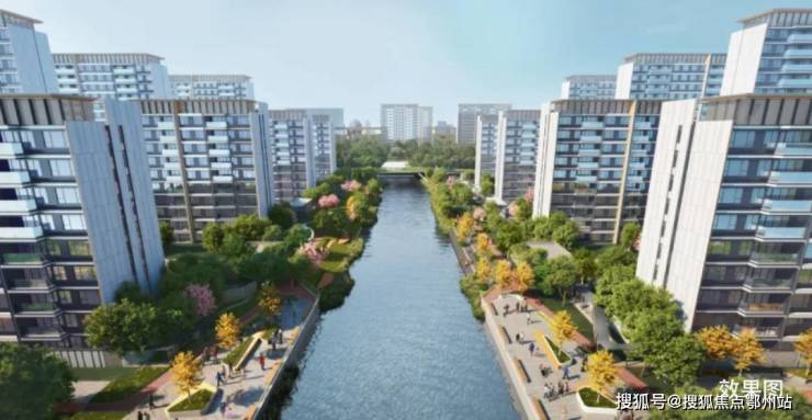 项目依托天然河道打造滨水居住区,15 万方水域与 86 万方自然秘境完美融合,形成“三路一河”景观轴。