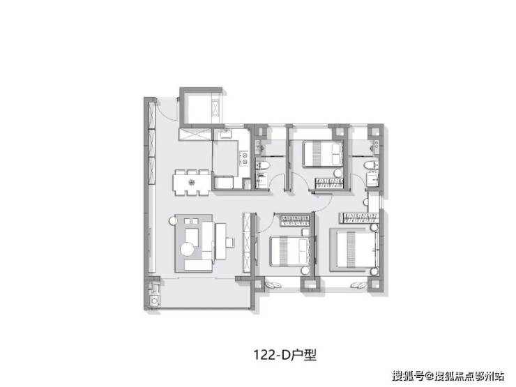 户型方面,主力产品建面约94-122㎡3-3+1房。