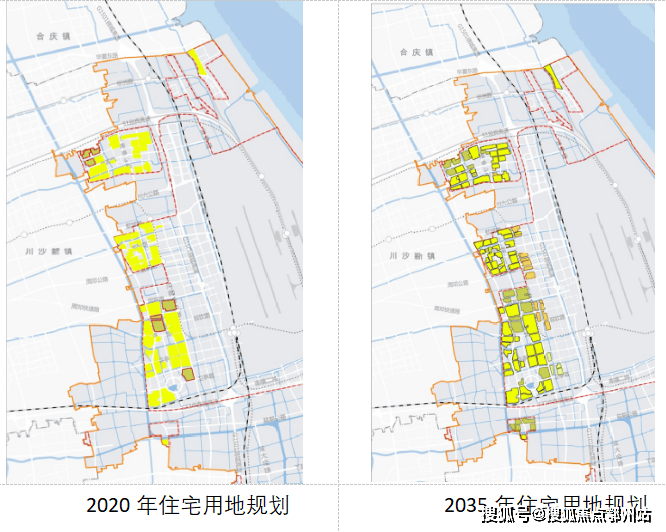 根据2035规划文件,可以比较规划至2020年的住宅用地和规划至2035年的住宅用地,来预判未来祝桥地区的增量居住供应情况。