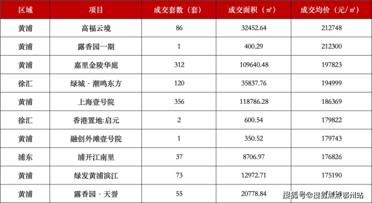 在成交面积前十榜单中, 上海壹号院、嘉里金陵华庭、华润华发·时代之城位列前三,其中前两个项目成交面积均超过10万㎡,显示出高端项目不仅单价高,去化速度也相对较快。