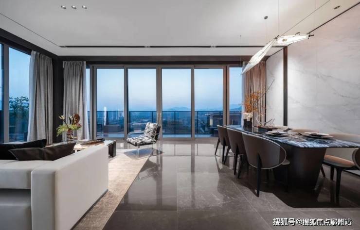 一体化厅堂设计,引入自然的光照与灵气,将建筑的质感、通透与山水自然完美融合,让生活仿佛印在了光影之上;