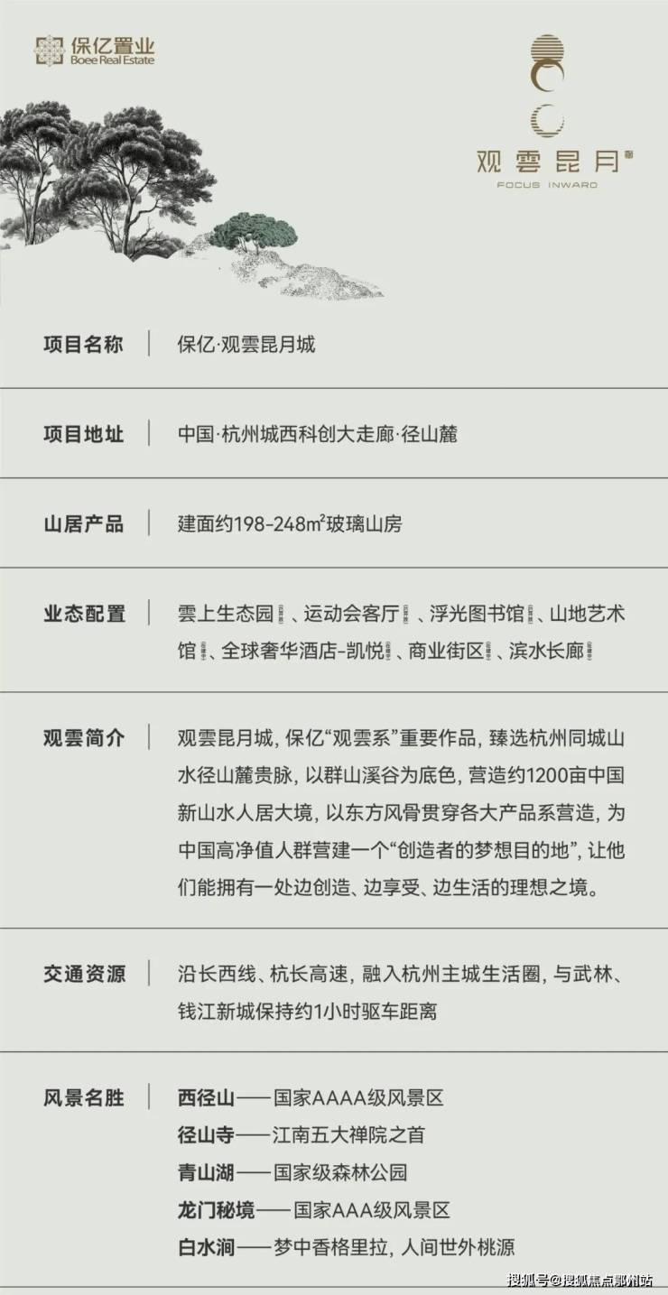 坐拥杭州“城西科创大走廊”的高端配置资源及径山等自然山水贵脉,【保亿·观雲昆月城】即是在这样的寻觅、期待与创造中带着关于“城市山墅”的所有想象,