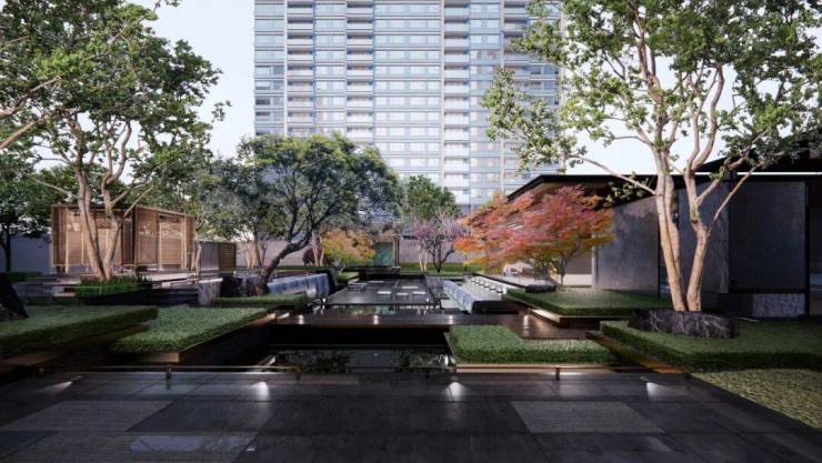 严选皇家御用的极品黑山石,辅以近1000㎡中央水系,营造极具东方禅意的松石之境,描绘 一园·三心·五悦·九雅的诗意画卷 。