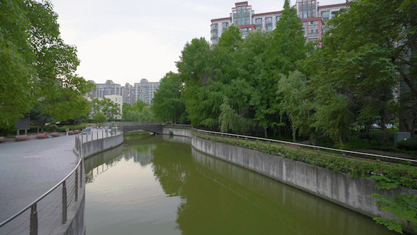 晨曦初绽时,推窗见绿树成荫翡翠华盖,桃浦河蜿蜒如青罗带,晨雾中飞鸟点水而过,惊起一圈圈泛着宋瓷青釉的涟漪。