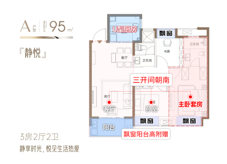 同样是设计水准一流的神户型,做到了 三开间朝南+主卧套房+三飘窗+南向观景大阳台 ,空间利用率以及营造的舒适度都保持在较高水准。