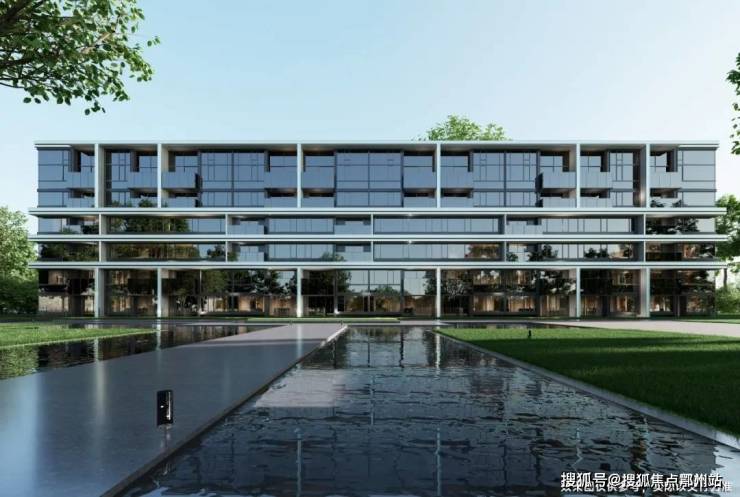 同时,部分采用 天青色釉面陶板,超扁平形制,同样搭配 大面幅落地Low-e三玻两腔玻璃,让建筑像是妙手剪裁的艺术品般行云流水,更大程度的为业主带来宽绰视野,体验摩登生活。
