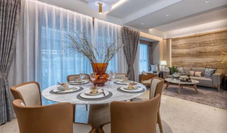 龙光天曜项目为精装交付,采用新加坡现代极简美学为基调,外立面采用米白色与高级灰主色调,搭配大面积三玻两腔材质玻璃,不仅提升了建筑的美观度,还增强了节能环保效果。