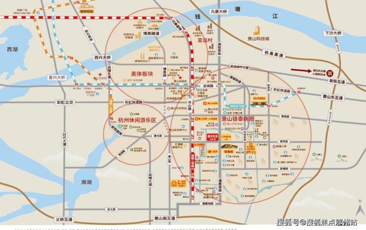 城市配套矩阵。零距离享奥体博览城地下约100万㎡商业;约1KM享杭州之门、