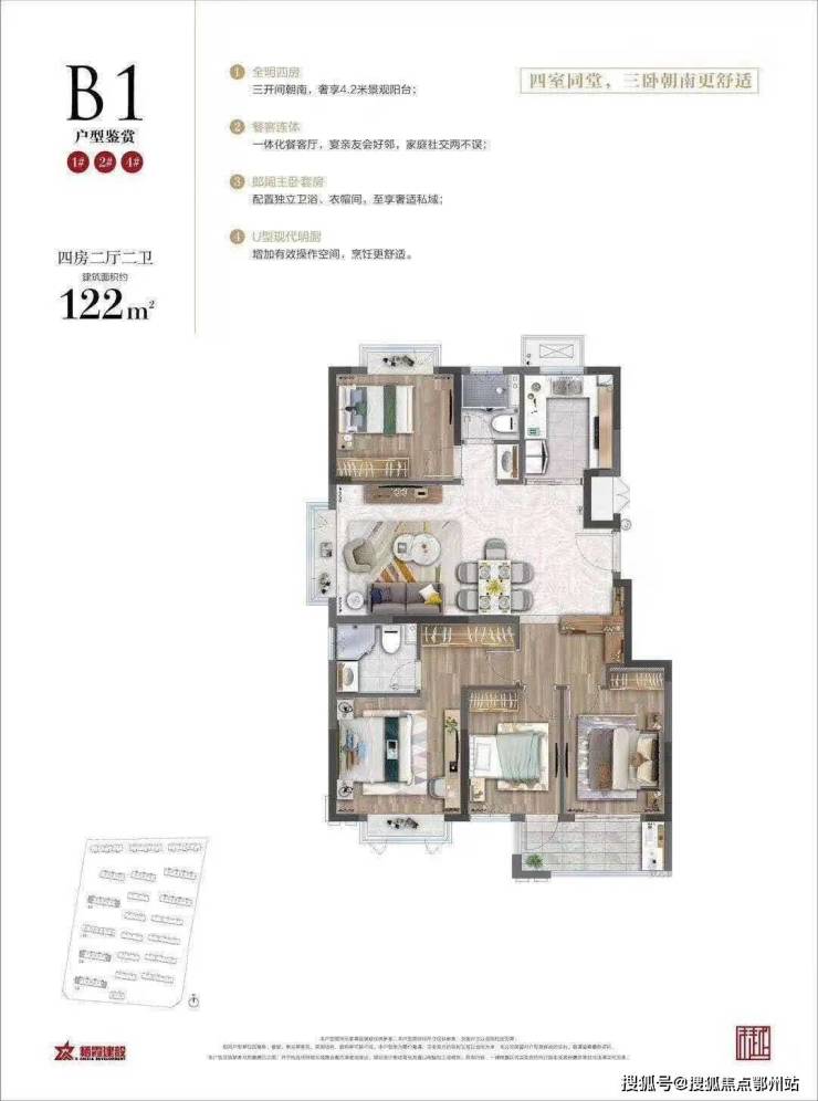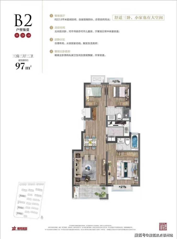 其中1#、2#、4#号分布户型97㎡和122㎡,仅3#号楼包含户型81㎡、106㎡和100㎡,小面积较为稀缺,仅22套。