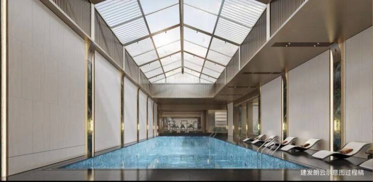 ④地下恒温泳池:配置了成人标准的泳池(约25*7米),并且单独设置了儿童的戏水空间,健身器材,满足不同年龄层次的需求。设置前台接待大厅,搭配蓝翡翠奢石吧台