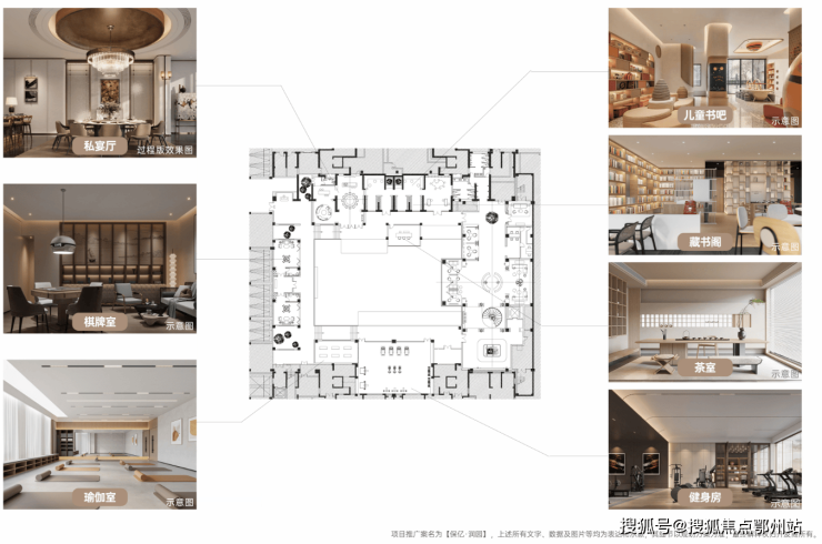 定制下沉式会所,约3000㎡多功能空间,配备健身房、瑜伽室、棋牌室、私宴阁、茶室、书吧、台球厅等高端生活区,集合健身、休闲、社交、会客等全维生活方式。下沉庭院的至美风景与精致艺术的室内装饰相得益彰,共同抒写人生院景。