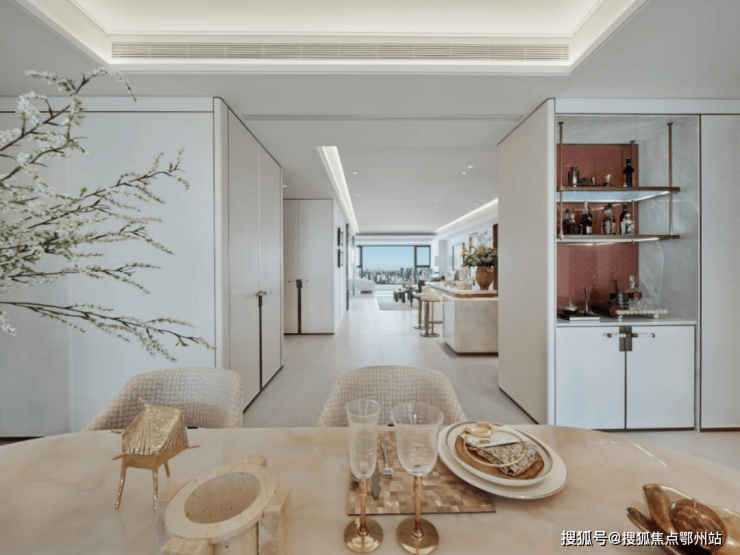 顶豪社交空间格局,普遍只有餐厅、客厅和阳台,该户型在南侧配置了一个家庭厅着实巧妙,可以是业主的茶室,也可以是女主人的手工室,当然也可作为X空间,随家庭结构和需求随心定制,书房、学习区、游戏区,女王化妆间等皆可。