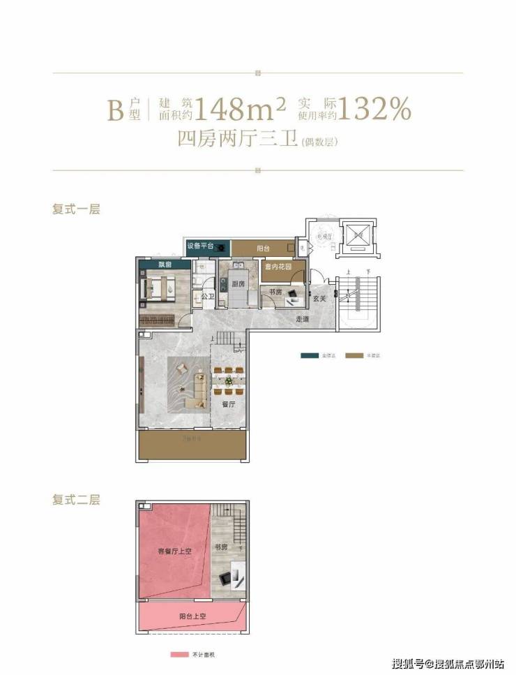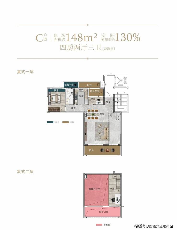 奇数层得房率做到130%,偶数层得房率做到了惊人的132%。顶楼户型得房率更是做到了惊人的133%。