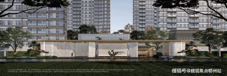 社区入口对标慢奢酒店风格打造,融入高定细节,诸如酒店感仪式门头+环岛式尊崇落客+迎宾式花园设计+精装地库等。