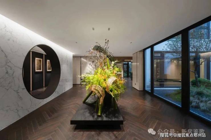 进退之间是人与景相逢将东方精神融入现代生活入户景观延续了山水园林的意趣,修竹如玉,流水汀步。随下沉庭院缓步慢移,即达地下二层的主客厅。