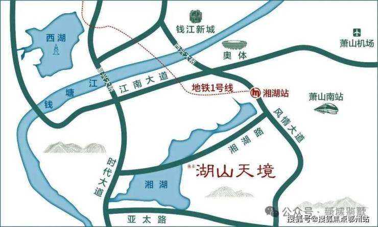 一端是风情大道,一端是时代大道,两条城市主轴,勾连起湘湖于城市的恰当关联。约10分钟至高铁南站,约25分可达萧山机场,外面的世界近在眼前;熟悉的湘湖烟霞之外,还有约53.5平方公里湘湖新城的扩建背书。