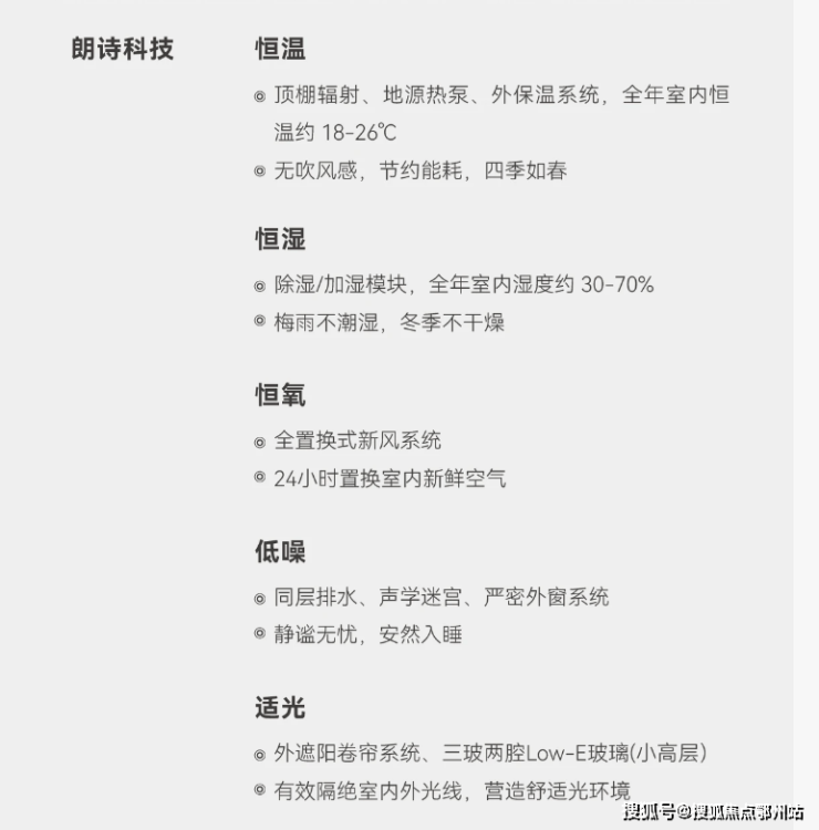 24小时全置换式新风系统,实现约1-2小时实现全屋空气置换,无需开窗,畅享清新空气;运用加湿/除湿模块保持室内约30-70%适宜湿度; 应用严密外窗系统、同层排水系统及声学迷宫,带来舒适静谧的生活体验。