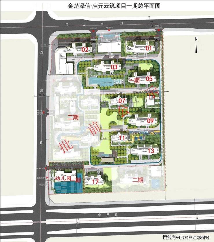 一期总建面约13.09万方,规划拟建 9栋住宅(17-27F)、1栋配套商业、1栋配套楼、1栋配套用房以及 1栋6班幼儿园。