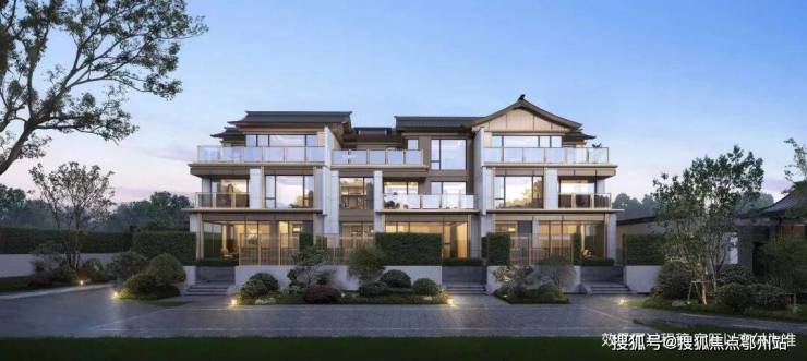 「望潮」低密产品的设计,延续了一期经典的禅境界中式风格,提取了禅境中式风格中的古朴雅致,取形于中国古代建筑中的悬山顶,营造庄严精致的外形。