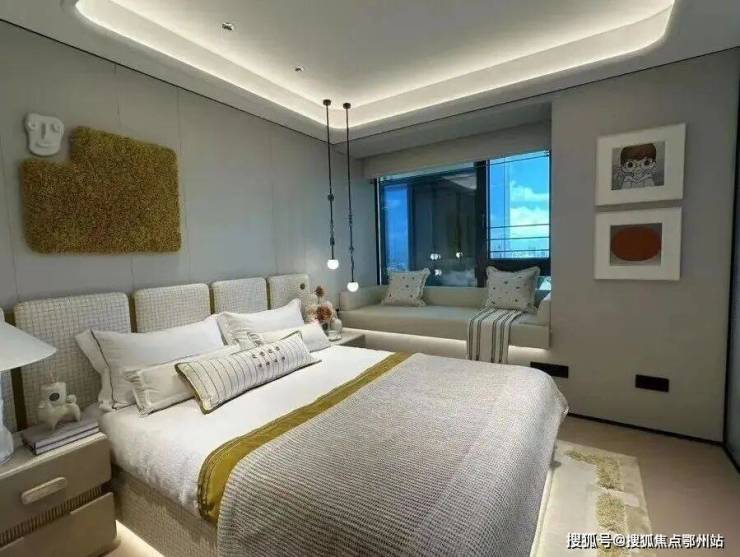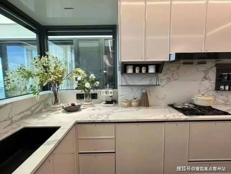 值得一提,“270°视野”贯穿户型,主卧、北向次卧带270°飘窗,纵览城市景;厨房竟然也有转角窗,阳台也带转角,这户型简直为观景而生。